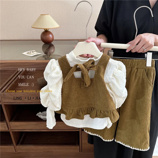 Children's Clothing Sets Puffed Sleeve Top + Tank Top + Wide Leg Pants 3pcs Toddler Girl Clothes 3 To 7 Years Outfits